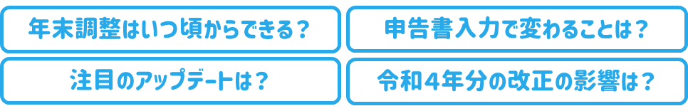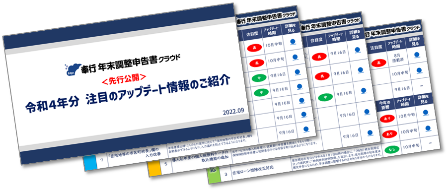 _ 今年も皆様がよりスムーズに年末調整業務を行っていただけるように、 9月と10月の2回にわけて機能アップデートを予定しています! 機能追加内容を先行公開いたしますので、ぜひご確認いただき、 今年の年末調整業務にお役立てください。
